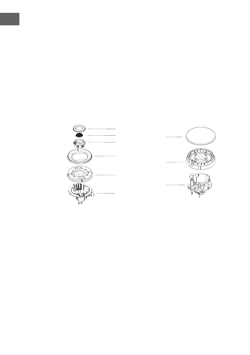 2. Positionner le chapeau de brûleur (7) sur le distributeur de amme (8) de sorte que