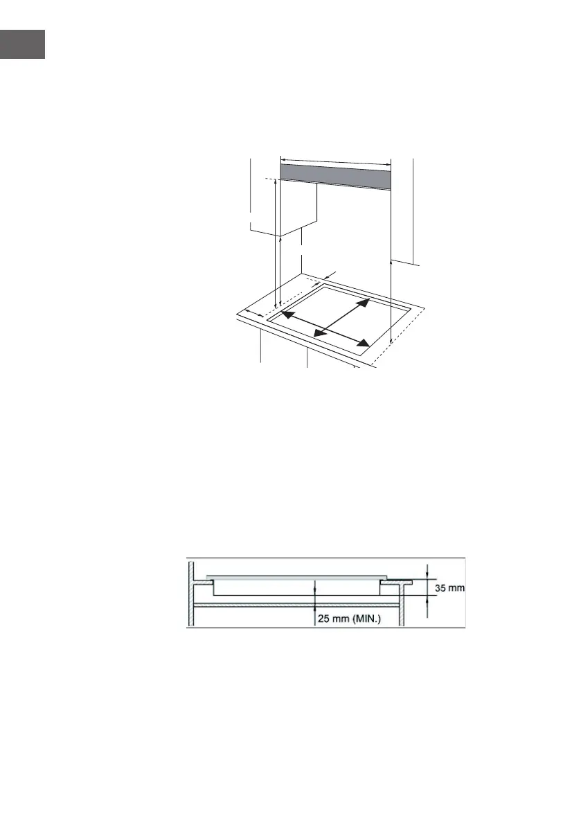 distancia mínima de 50 mm hacia el borde exterior de la placa de cocción.
