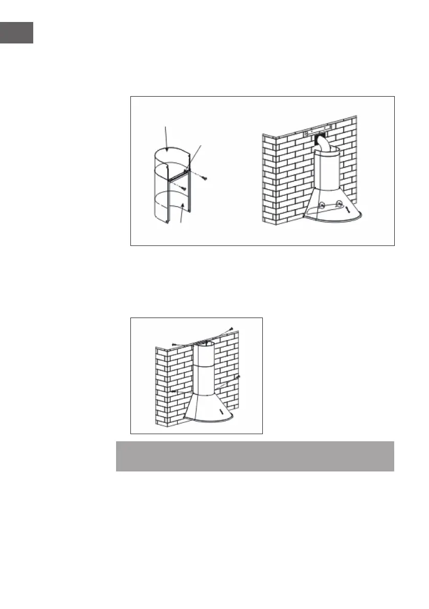 während Sie die Außenblende mit Schrauben am Dunstabzugshaubenkörper