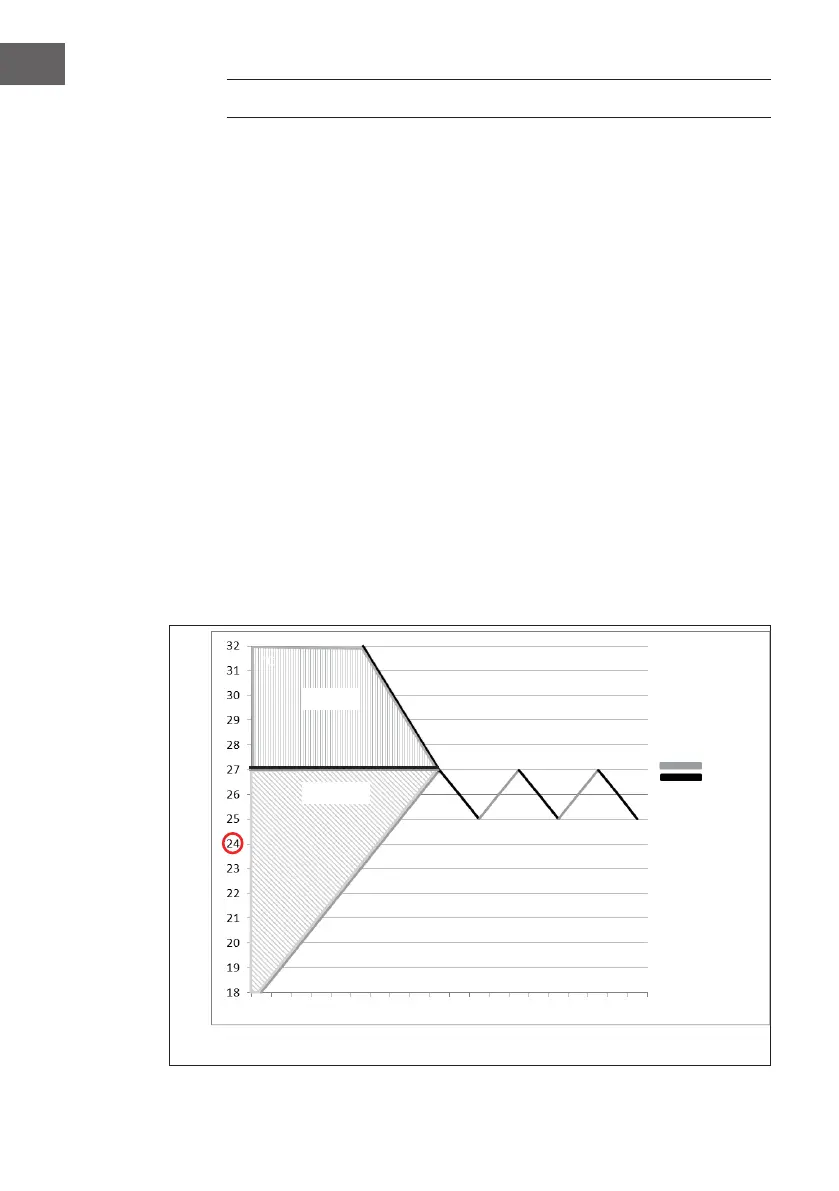 3°C). The appliance then cools down to 25 °C (setpoint + 1 °C) and then switches