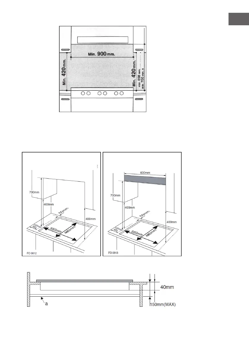 estar a una distancia mínima de 700 mm de la placa de cocción, como se
