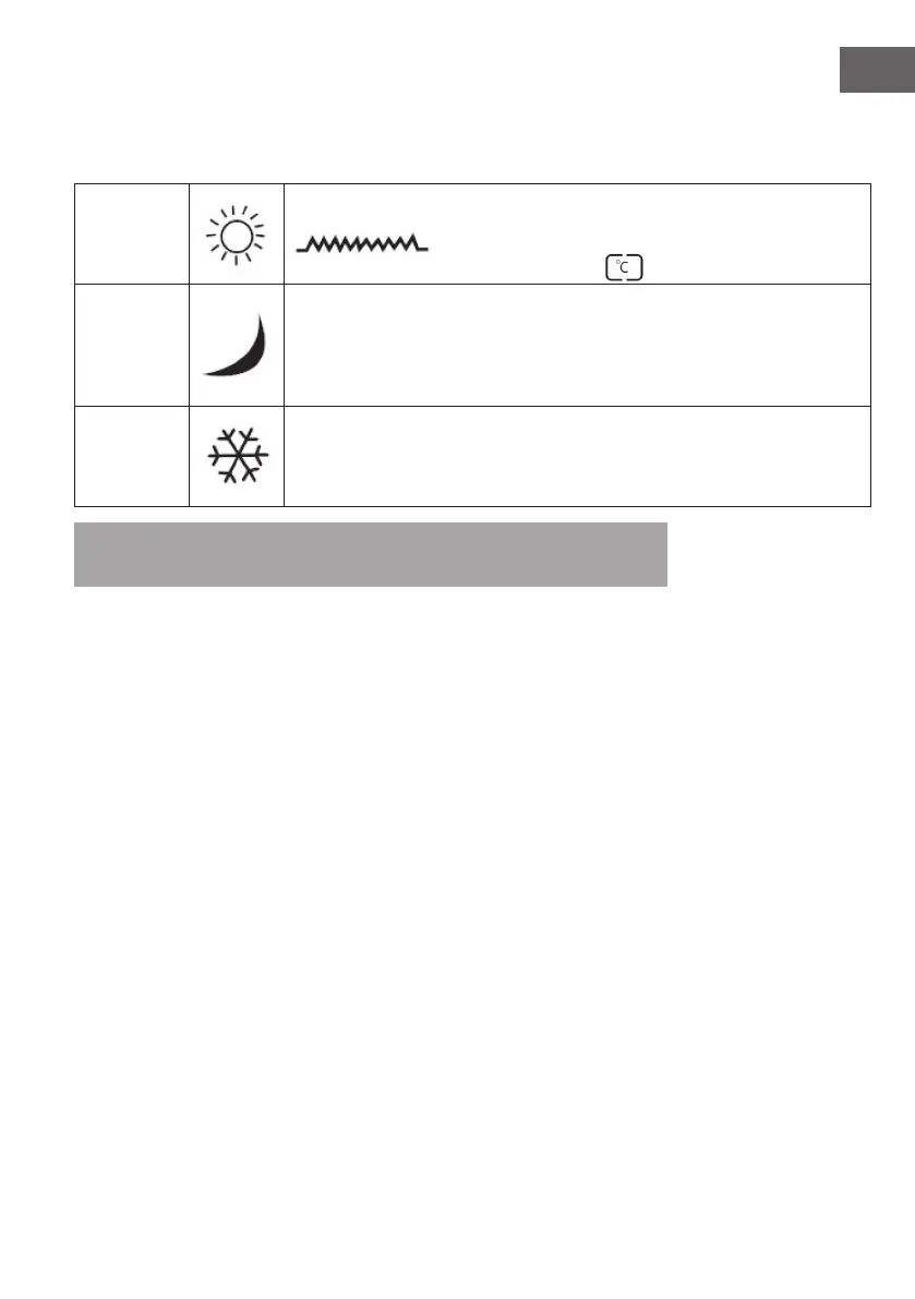 (Komfort), Economy (Strommsparen) und Frost-free (Frostfrei) auszuwählen.