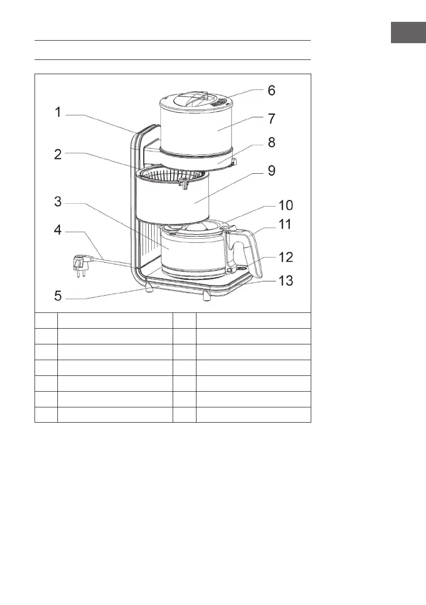 6 Couvercle du réservoir d'eau 13 Logement inférieur