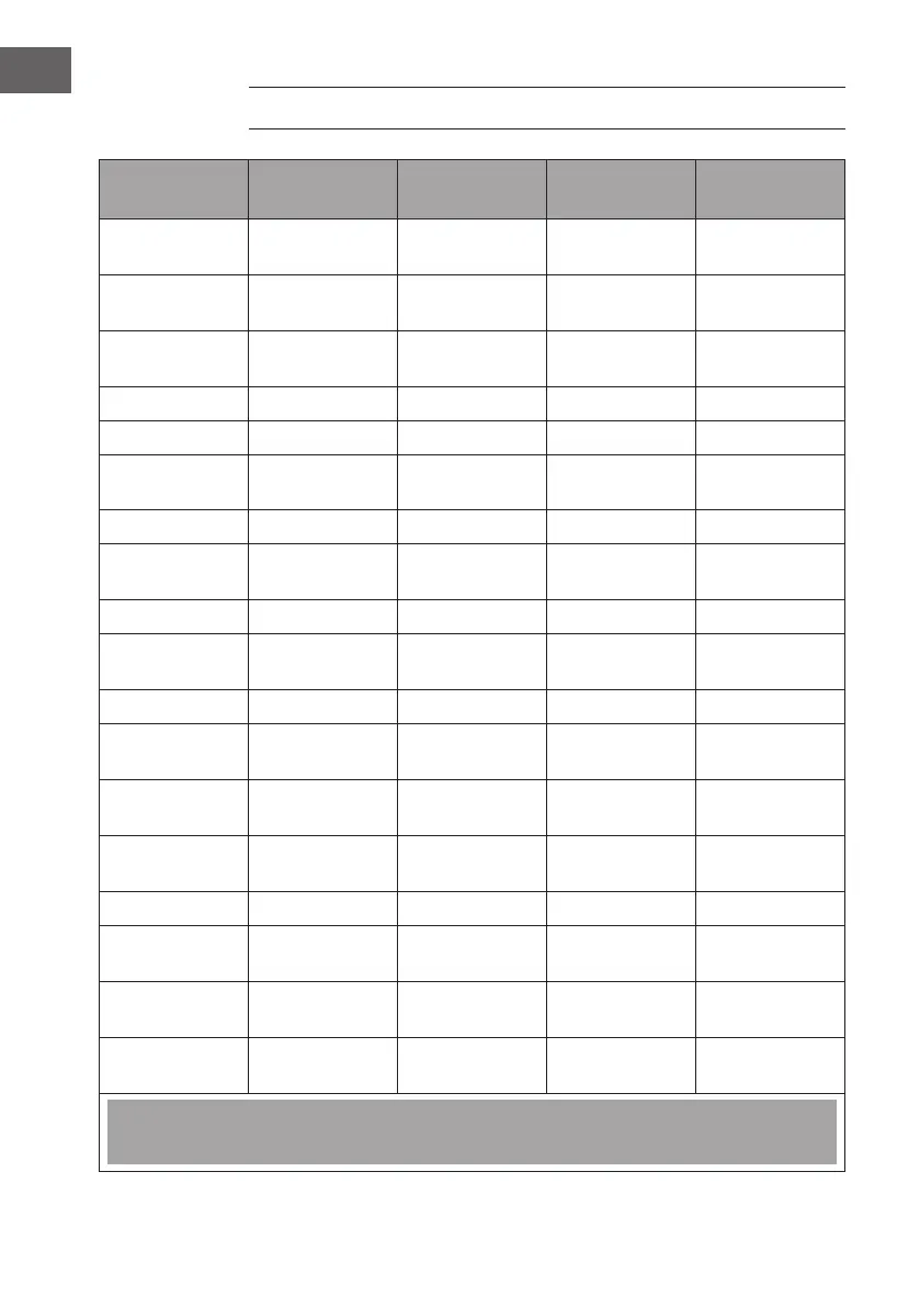 Note: The information in the table is for reference only. Temperature and time settings can be