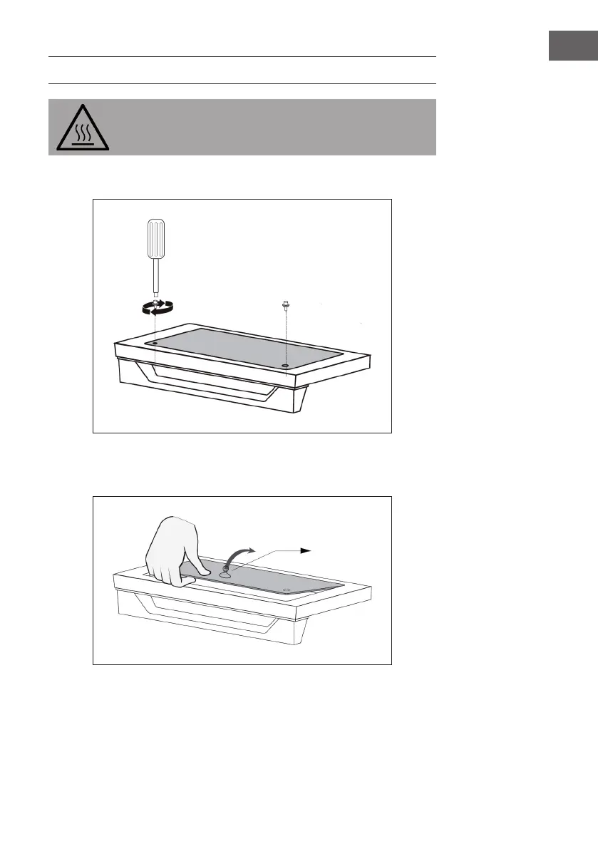 Risk of burns! Make sure that the glass door has cooled down