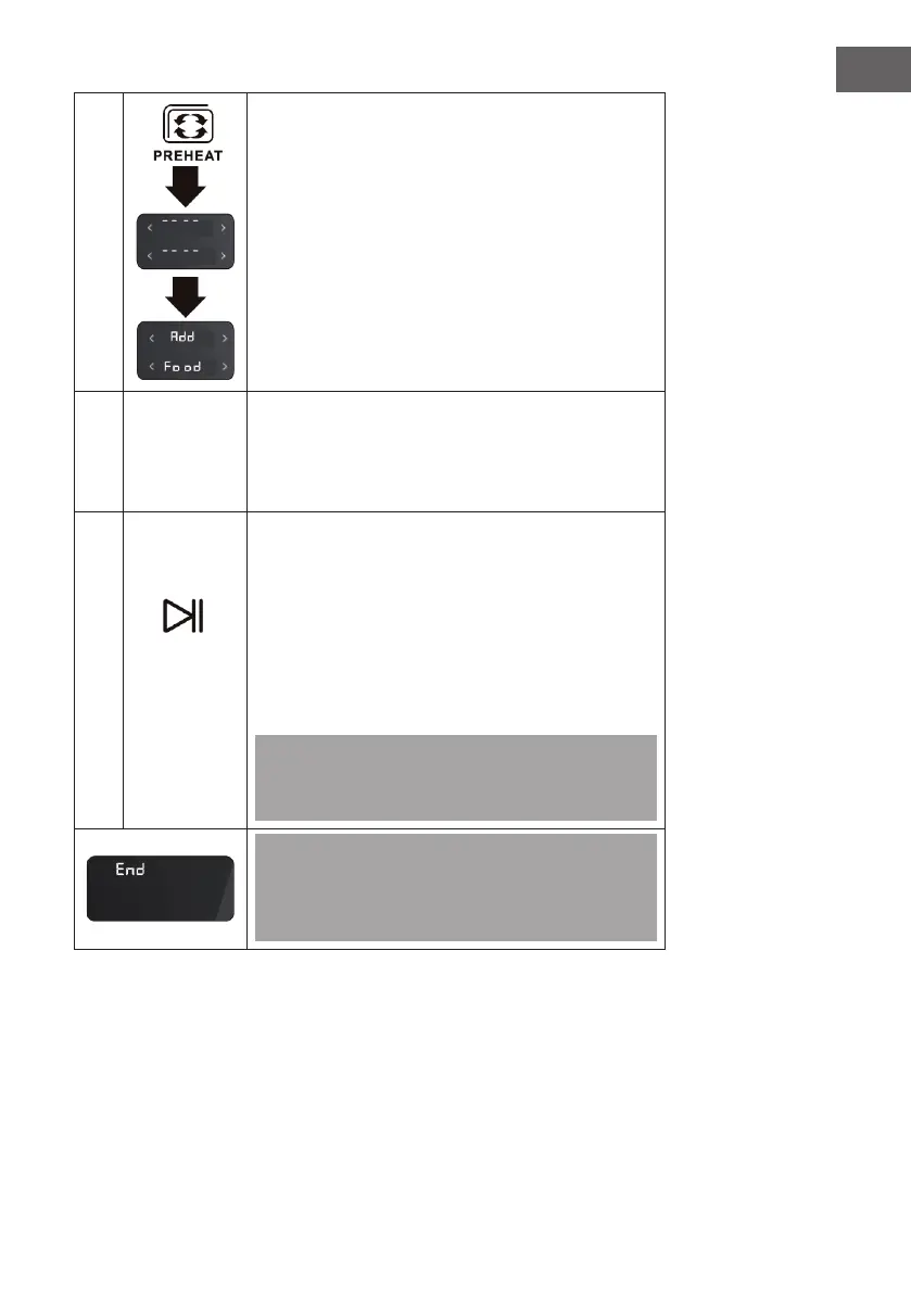 Food" (añadir alimentos). (Tras el precalentamiento,