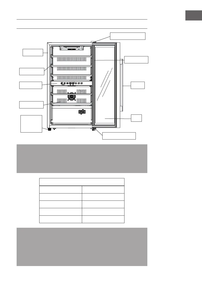 Hinweis: Ablagebretter, Türrahmen, Griff und andere Zubehörteile können je nach