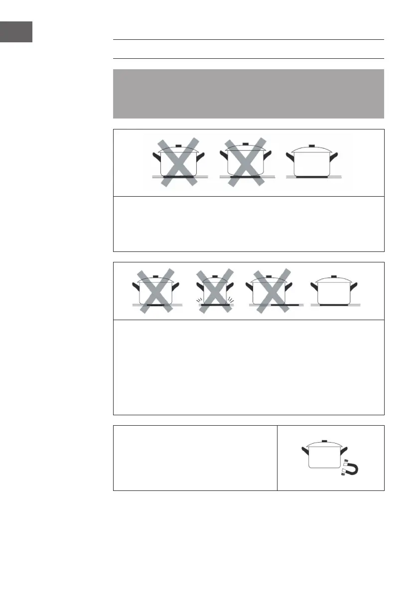 Induktionskochfeld erkannt werden. Stellen Sie den Topf immer in die Mitte des