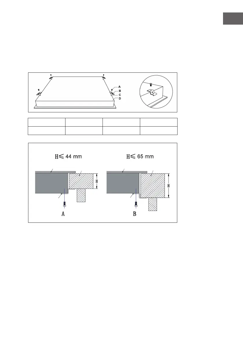 2. Fix the hob on the work surface by screw 4 brackets on the bottom case of