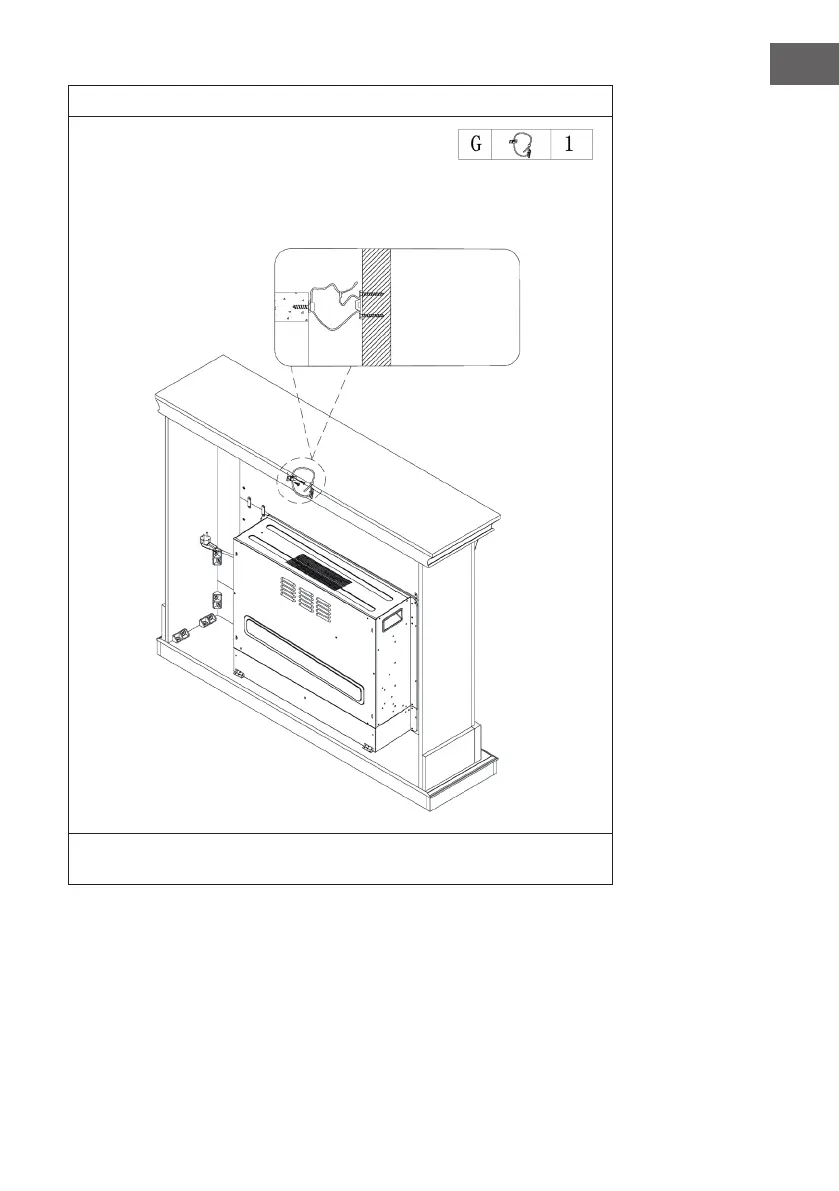des Seils wird auf dem Kaminsims befestigt und dann das Seil enger gezogen.