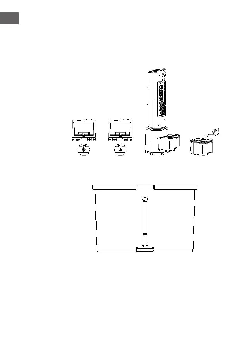 tank. Before adding water, please open the water tank lock, take the water tank out and