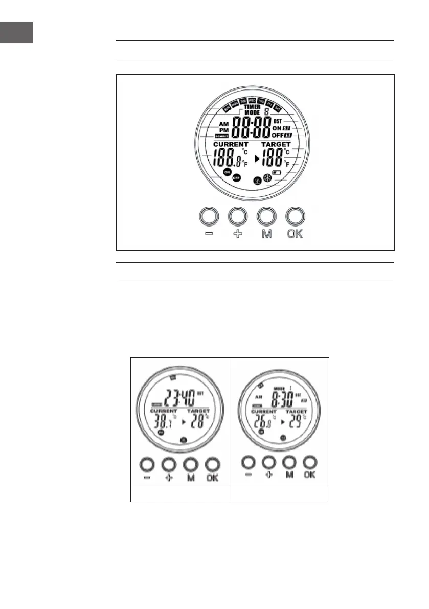Drücken Sie die Taste [M], um zwischen Systemzeit und Thermostat zu wechseln.