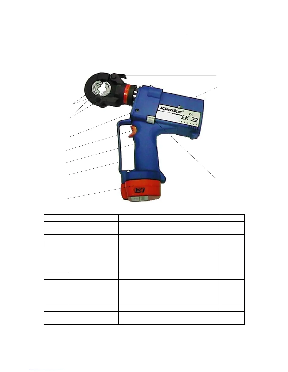 The electric-hydraulic crimping unit type EK 22 is a hand held tool and consists of the