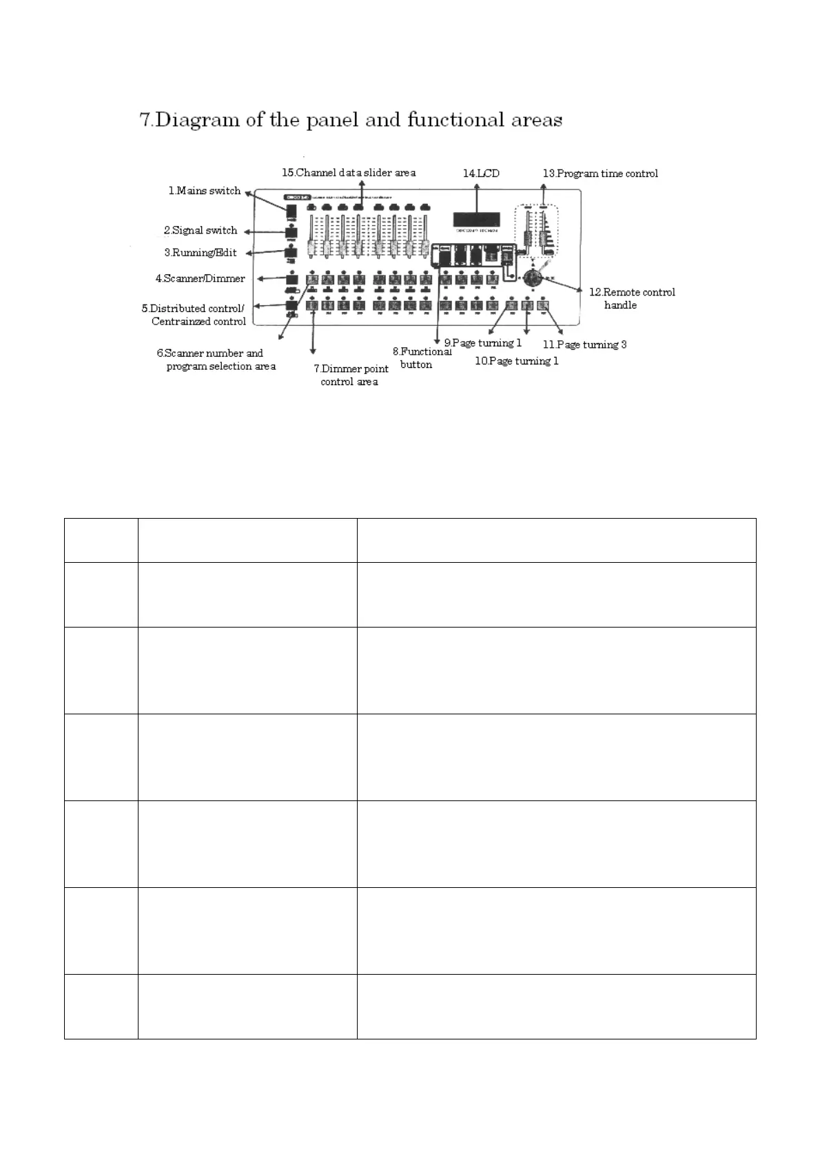 8.Explanation of functional area of the panel