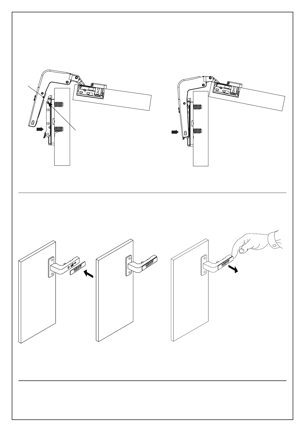 hinge mounting plate. Press the back of the hinge arm into the mounting plate clasp until you hear a “click”.