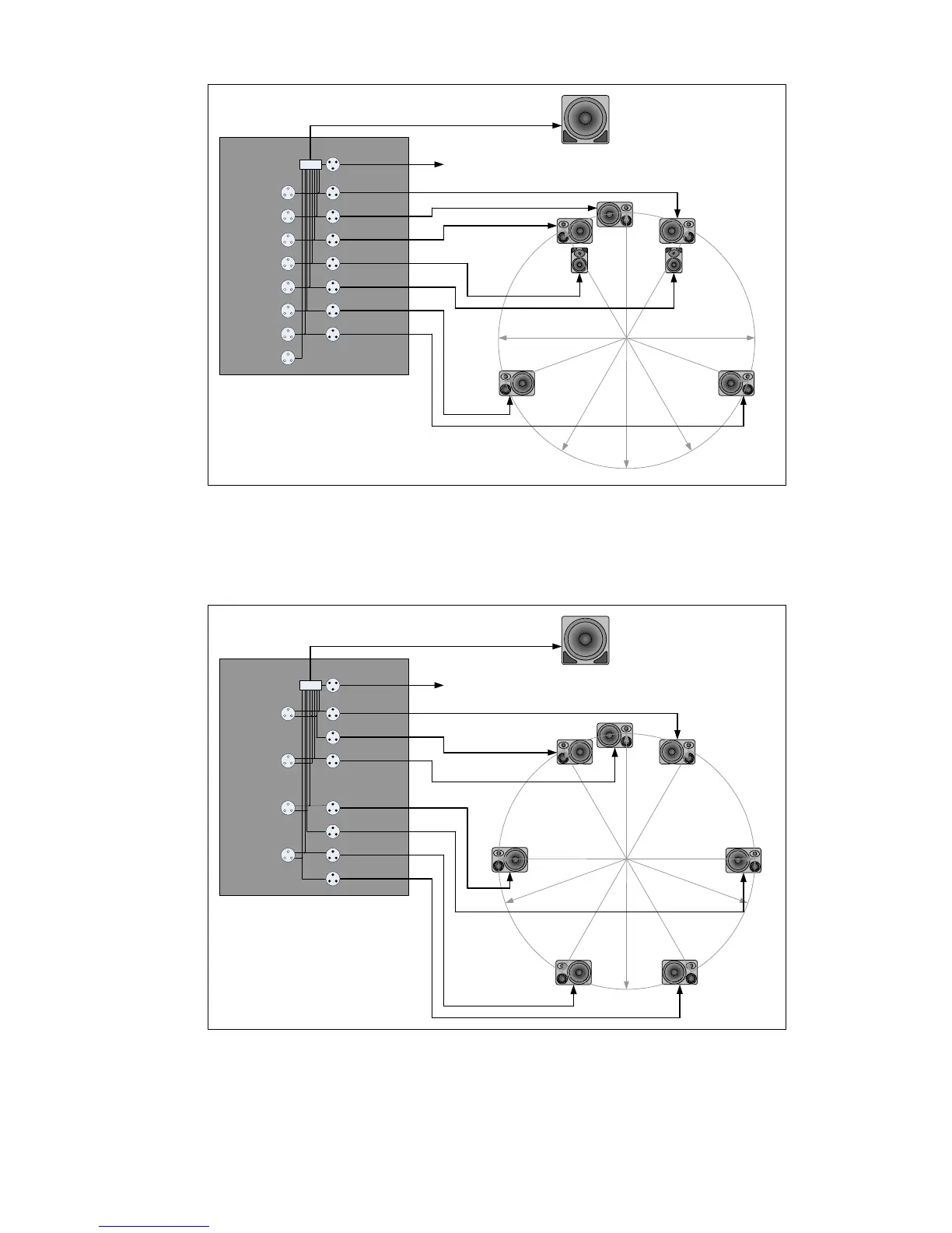 Bass Array™, il faut configurer les caissons comme illustré ci-dessous. Vous pouvez utiliser des cartes d’entrée