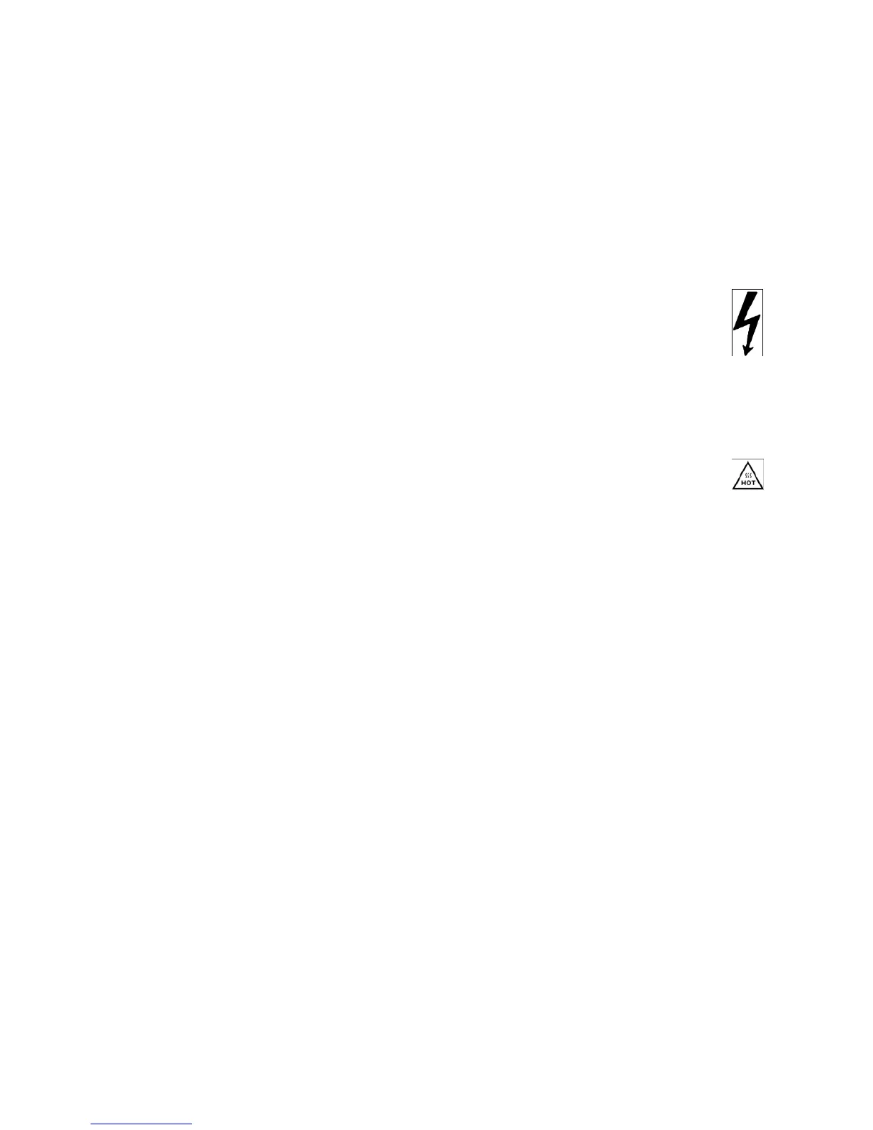 • Certain areas of the cabinet, cover, and rear panel can achieve extreme temperatures and are therefore marked with a