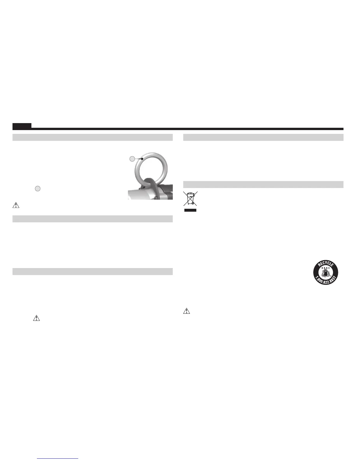 WARNING: To reduce the risk of serious personal injury, DO NOT use the lift ring