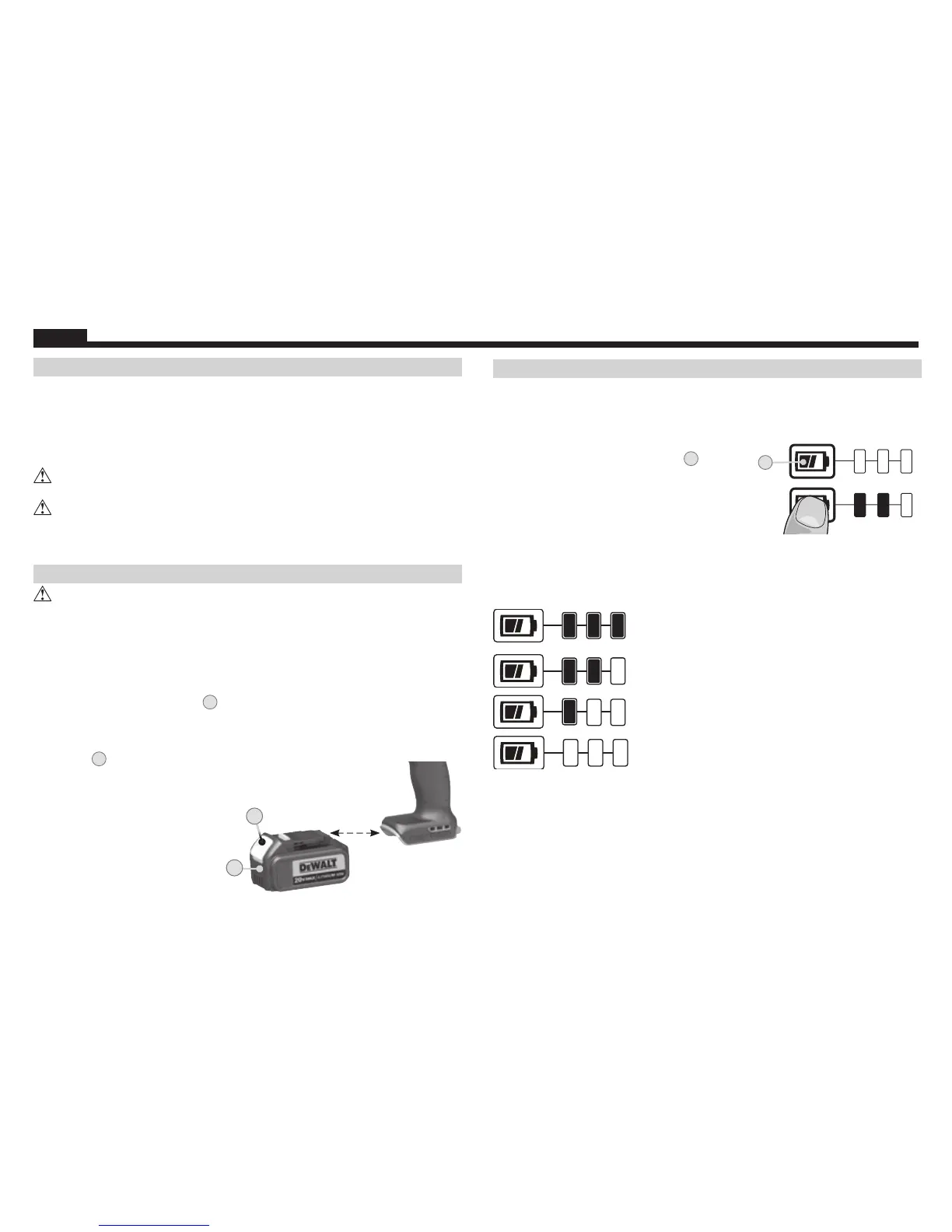 Algunos paquetes de baterías DeWALT incluyen un indicador de carga que consiste en tres luces