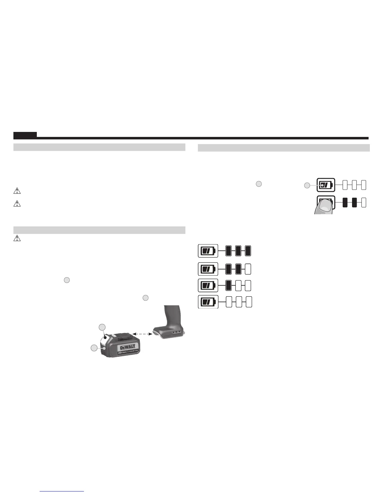 Certains blocs-piles DeWALT comprennent un indicateur de charge constitué de trois témoins à