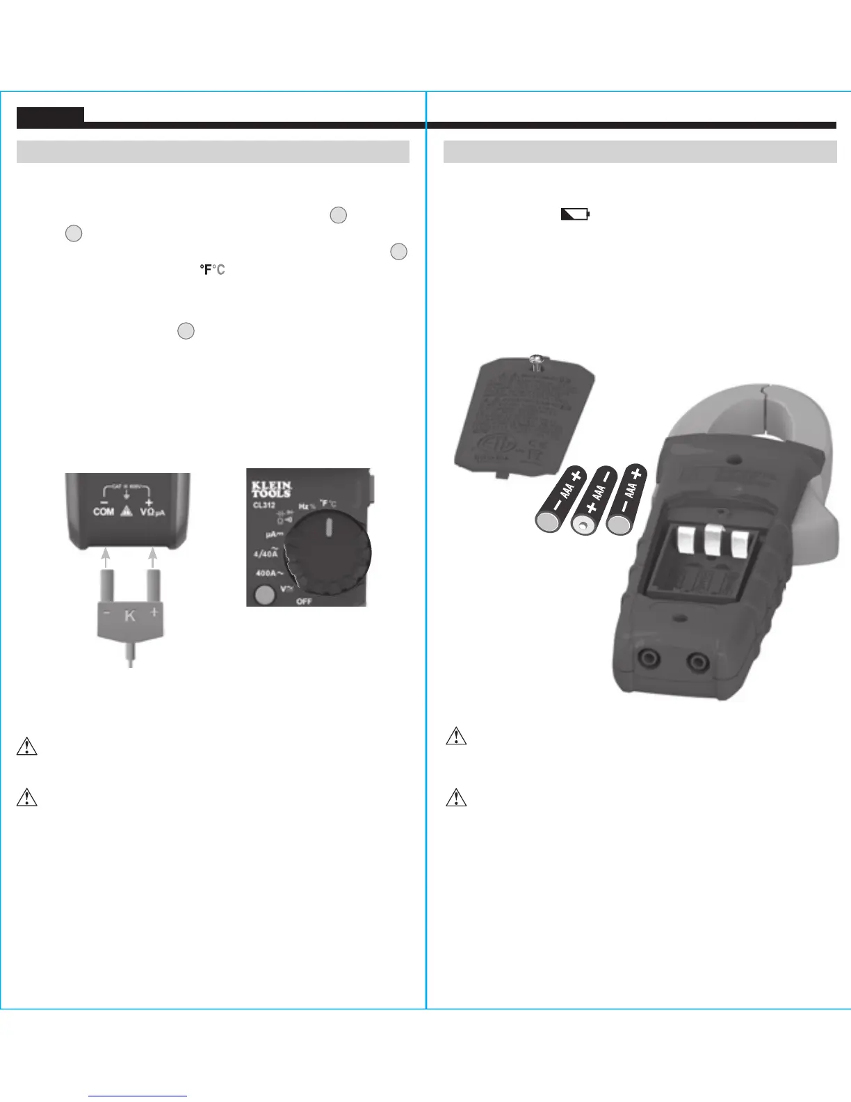 1. Insérez le thermocouple de typeK dans les prisesVΩ