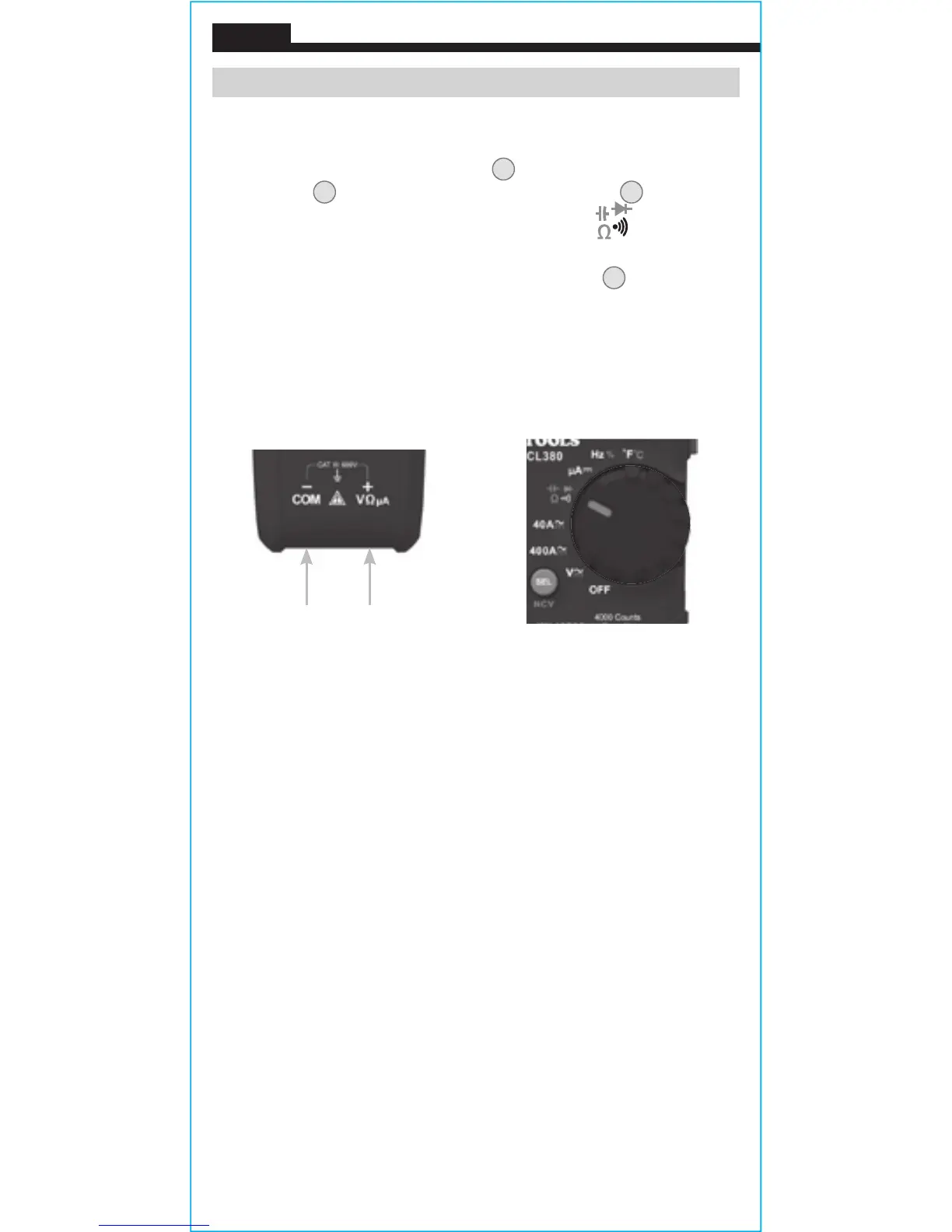 1. Insert RED test lead into VΩ jack