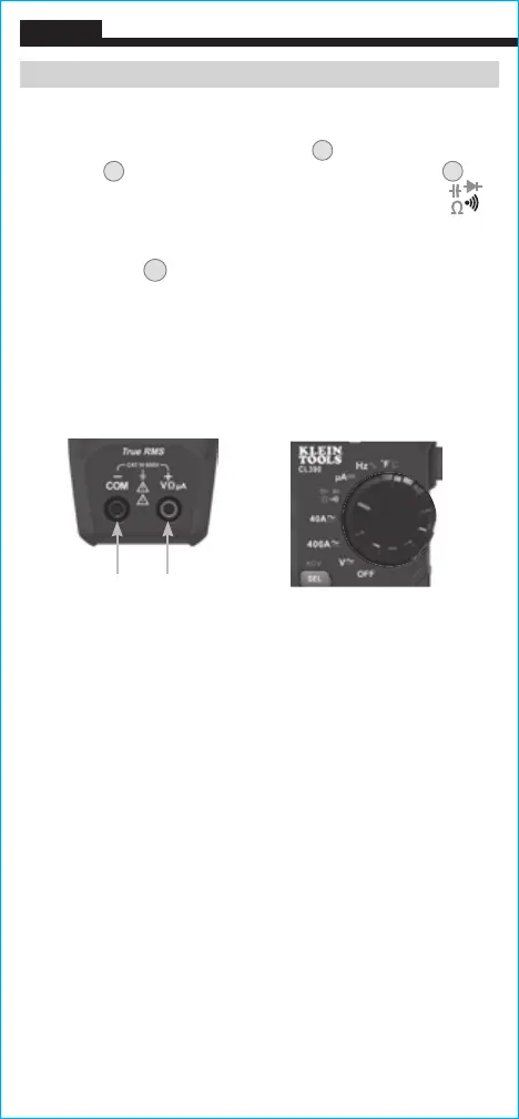 1. Insérez le fil d’essai ROUGE dans la prise VΩµA