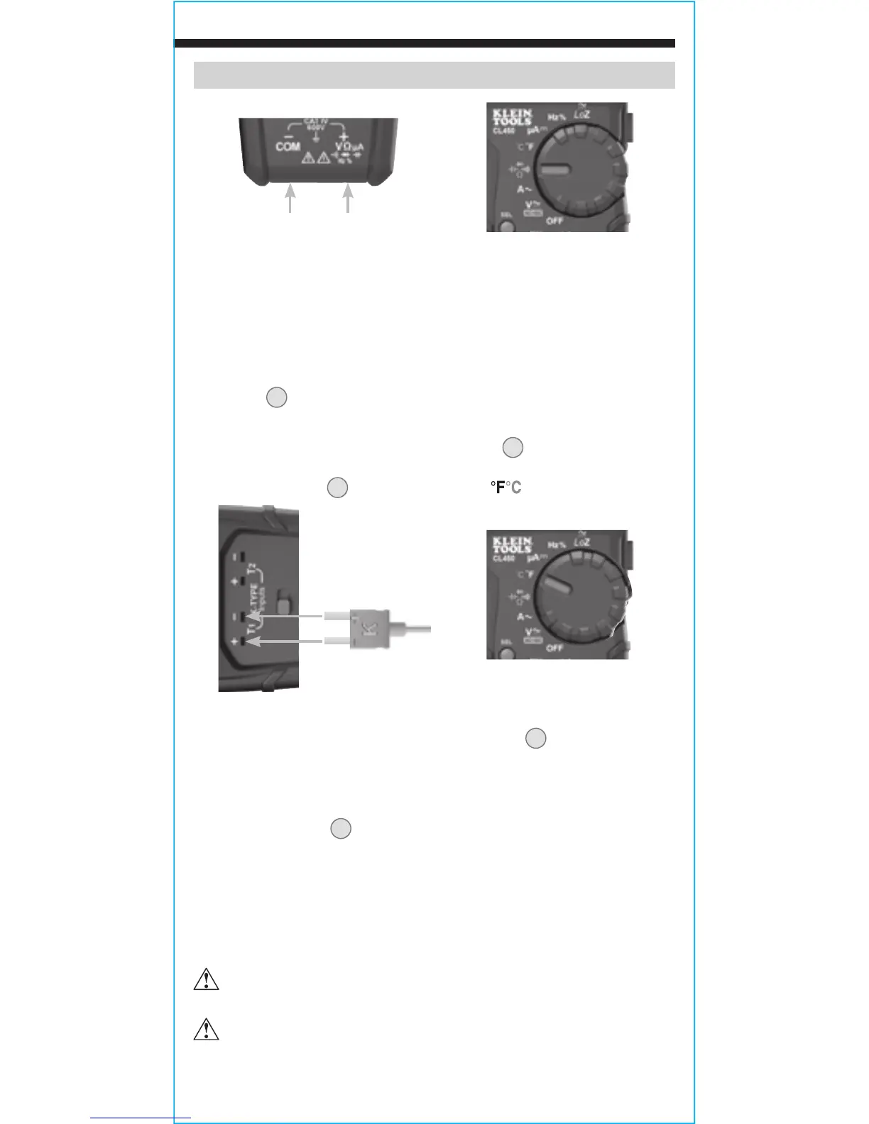 NOTE: The meter defaults to Fahrenheit scale in this mode. To