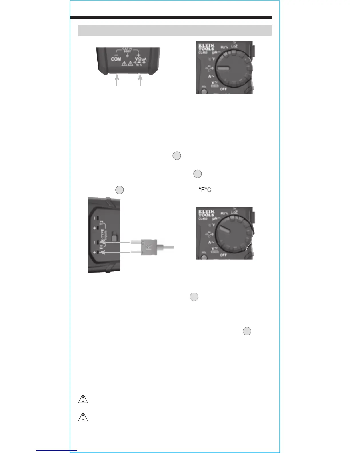 polaridad en el termopar y en el multímetro), y gire la perilla selectora