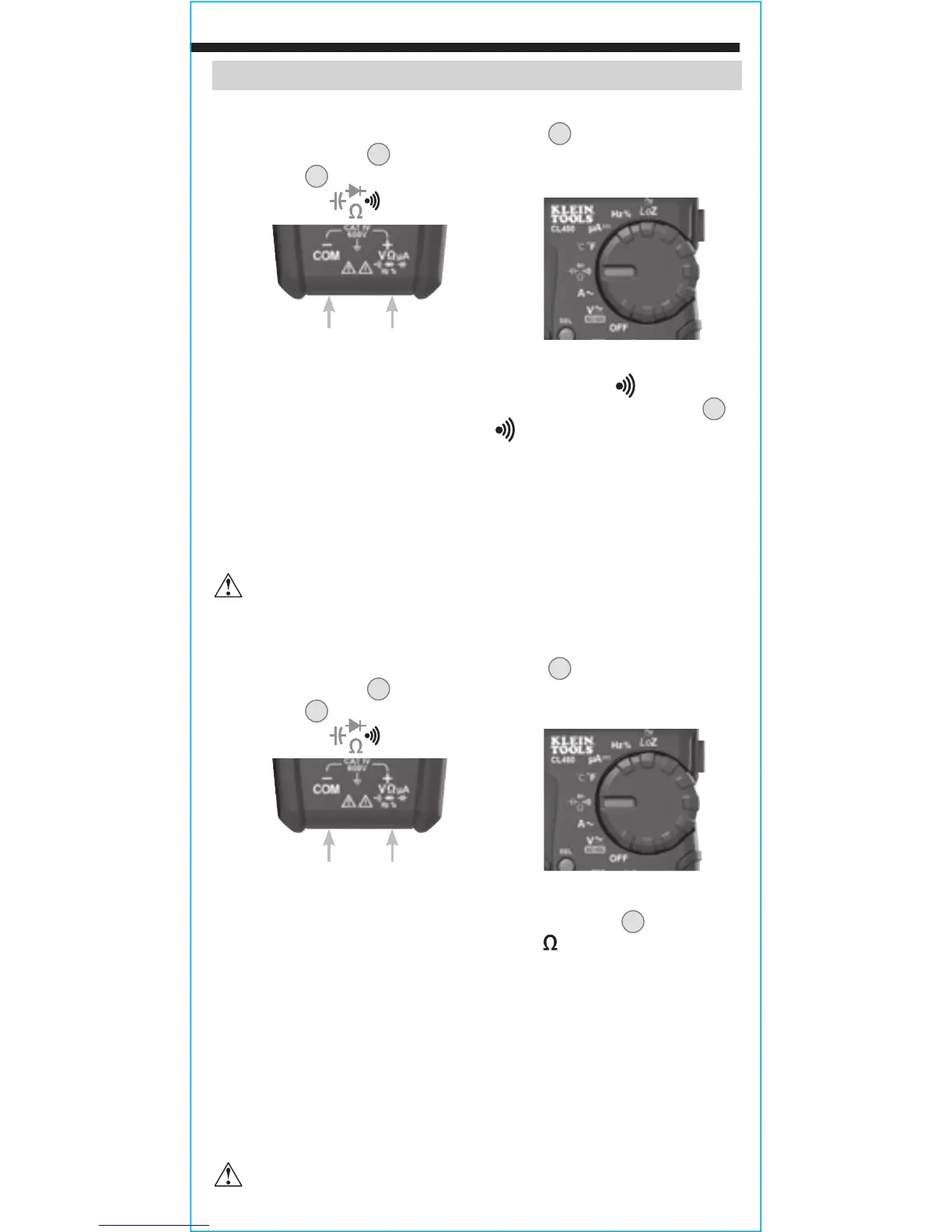 REMARQUE: Dans ce mode, le multimètre se met par défaut à Test de