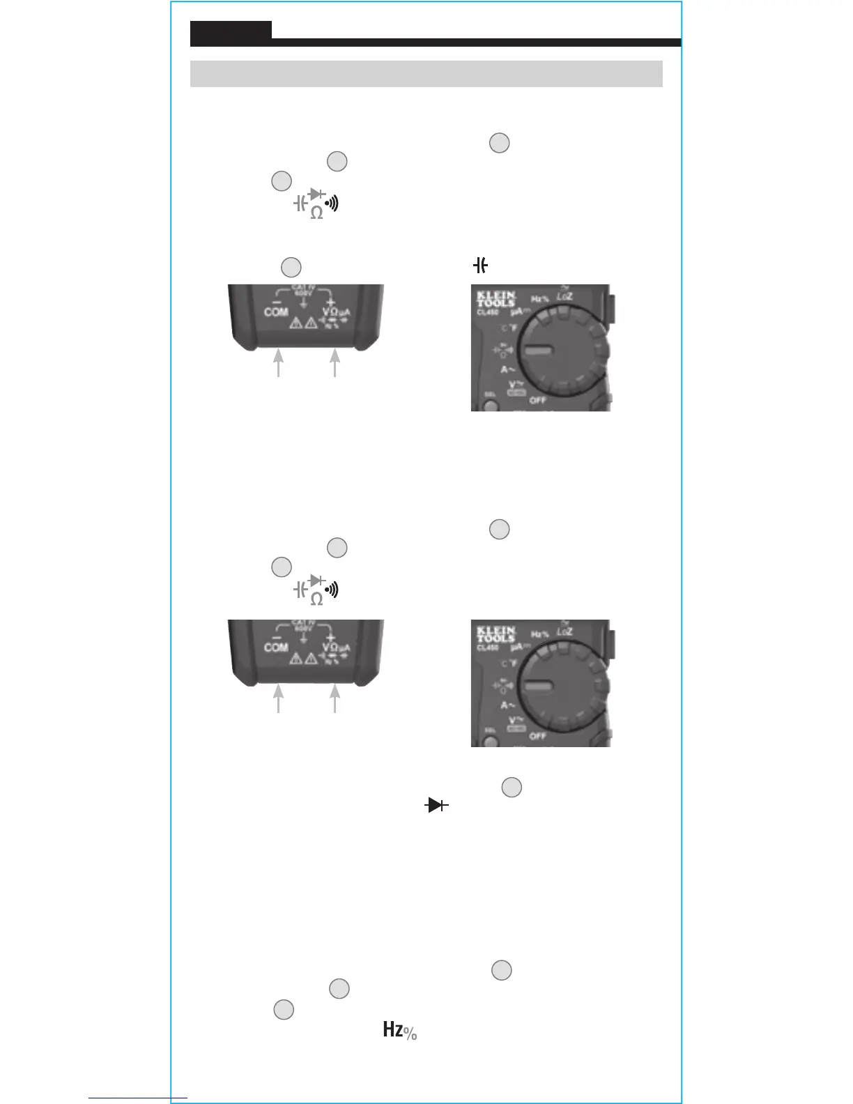 REMARQUE: Dans ce mode, le multimètre se met par défaut à Test de
