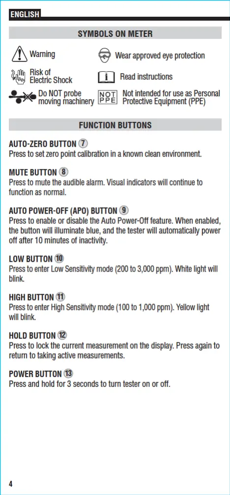 Klein Tools ET160 - Meter Symbols and Functions; Meter Symbols and Meanings; Function Button Operations
