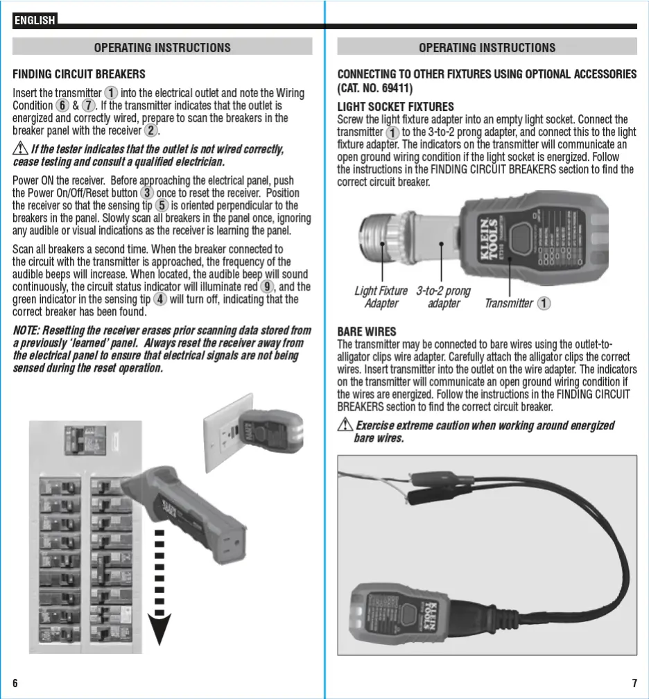 Klein Tools ET310 - Advanced Operations; Finding Circuit Breakers; Using Optional Accessories