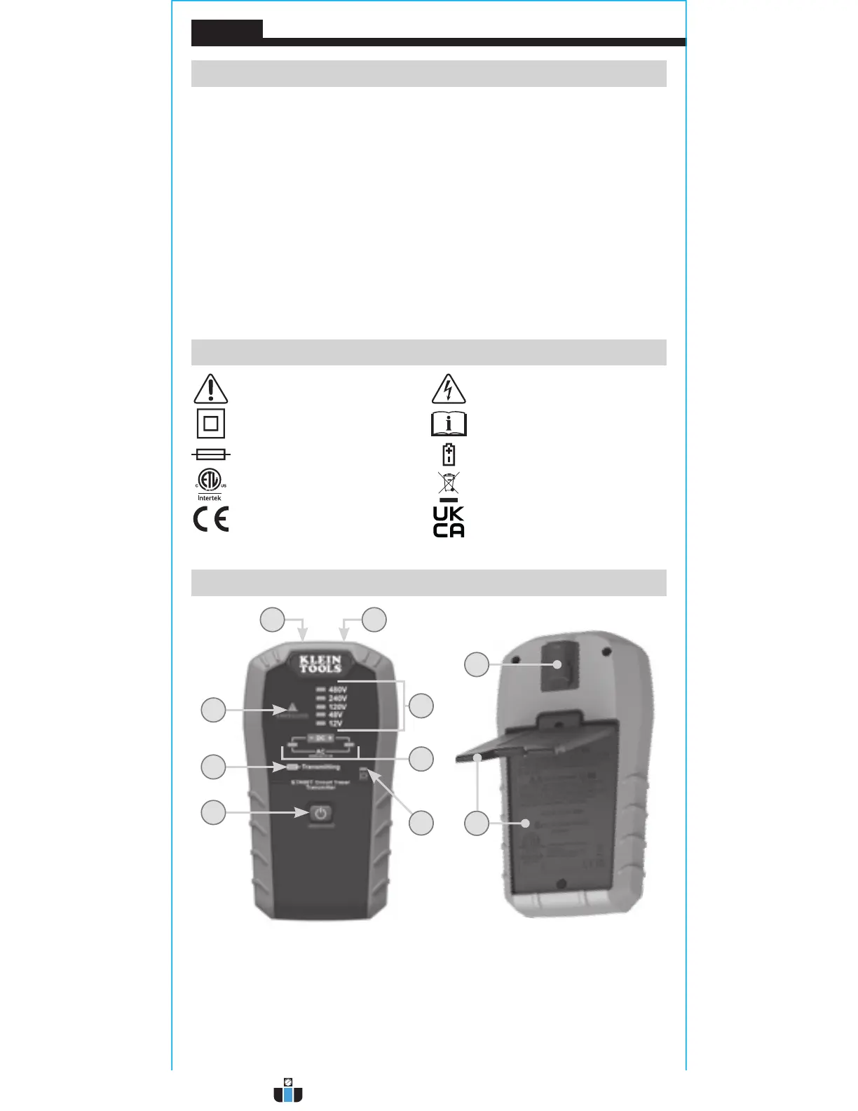 • Energized/ELV Indicator: >25V AC/DC (solid), >480V AC/DC (blinking)