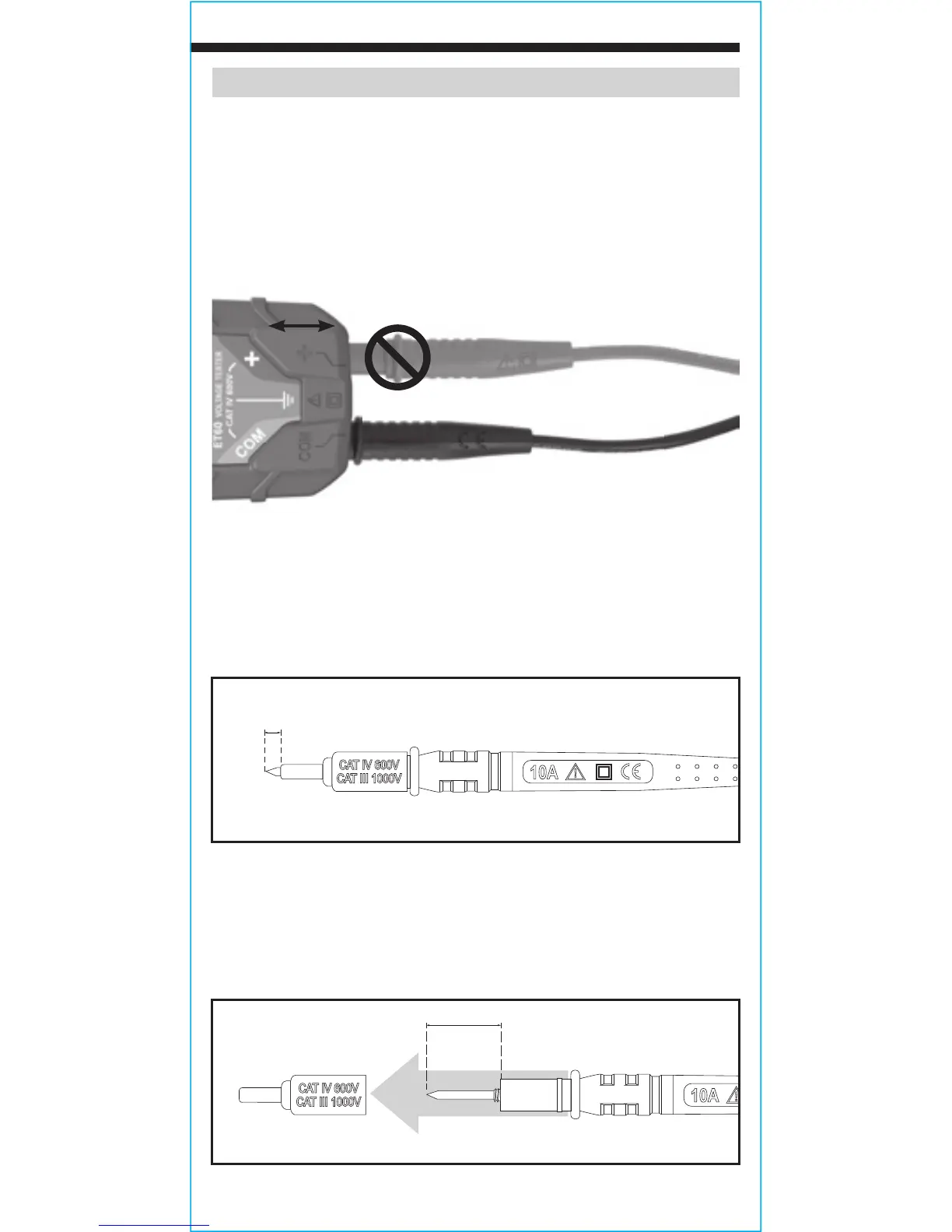 and the red lead into the "+" jack. Do not test if leads are improperly