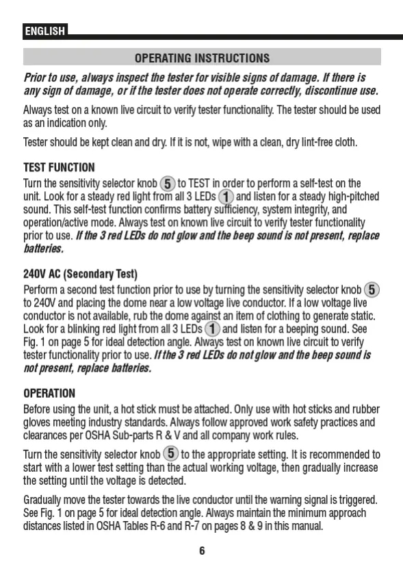 Klein Tools HVNCVT2 - Test Function; 240 V AC Secondary Test; Operation