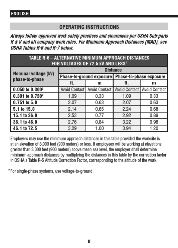 Klein Tools HVNCVT2 - Minimum Approach Distances; Table R-6 Alternative Minimum Approach Distances