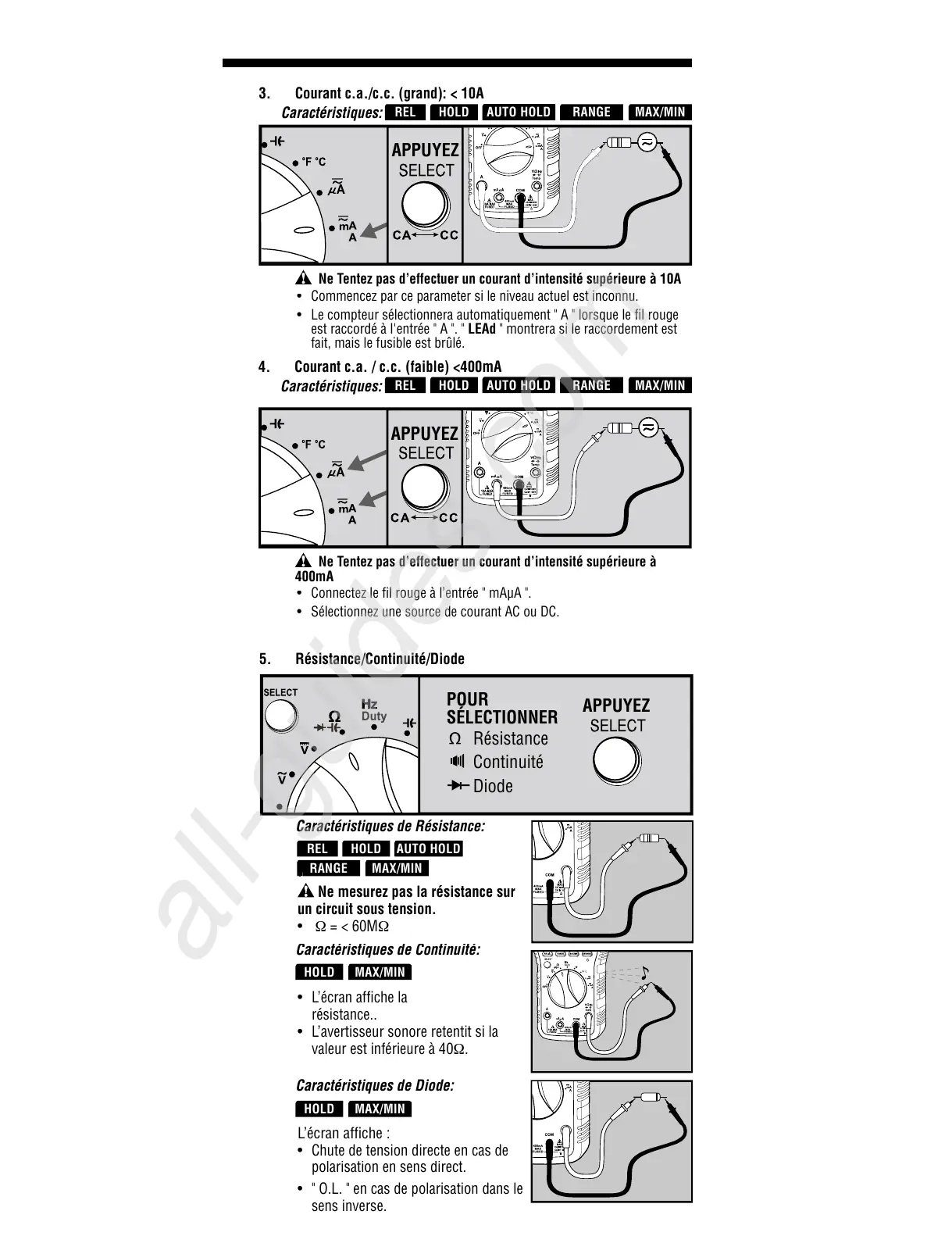 5. Résistance/Continuité/Diode