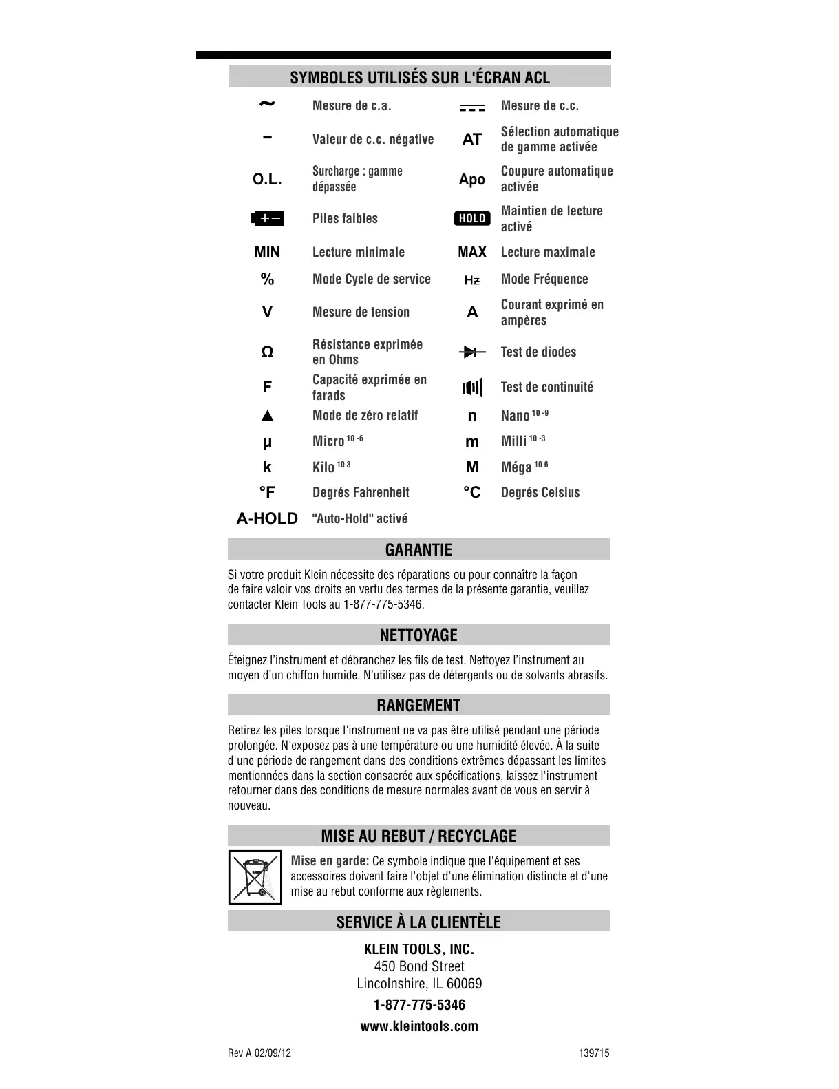 Si votre produit Klein nécessite des réparations ou pour connaître la façon