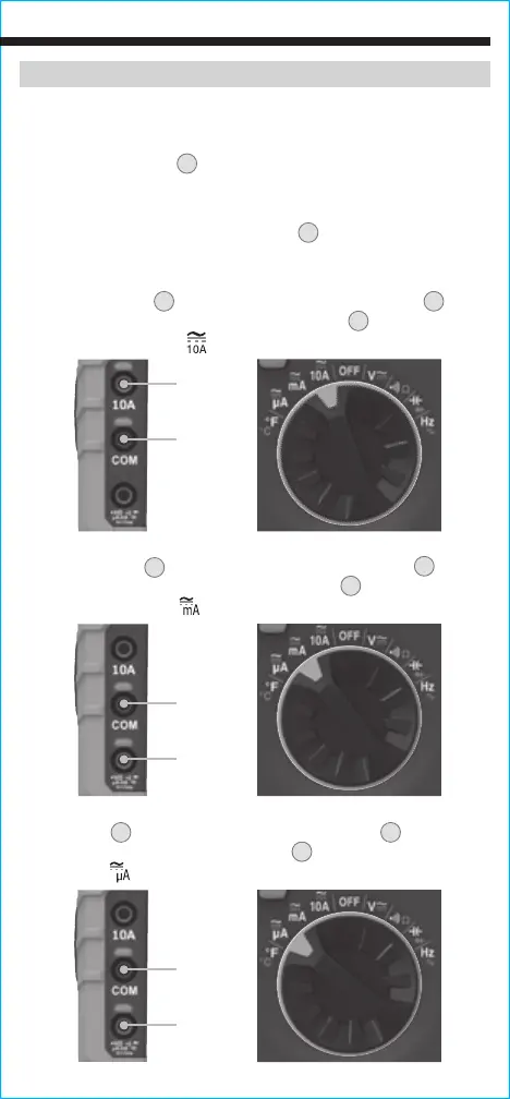 • Pour les courants c.a./c.c. >400mA et <10A: Insérez le fil d’essai ROUGE