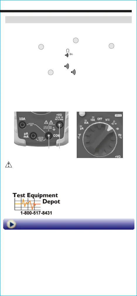 NOTE: The meter defaults to Continuity testing in this mode. Ensure