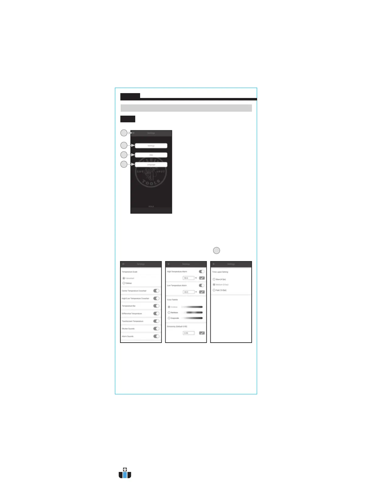Klein Tools TI222 - Settings Screen; Camera Settings