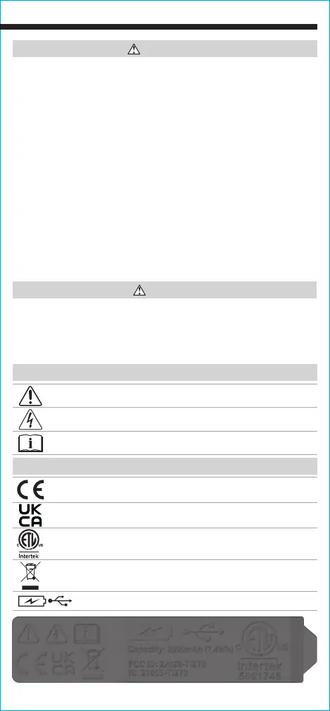 • Risk of fire and burns. DO NOT open, crush, heat above specified