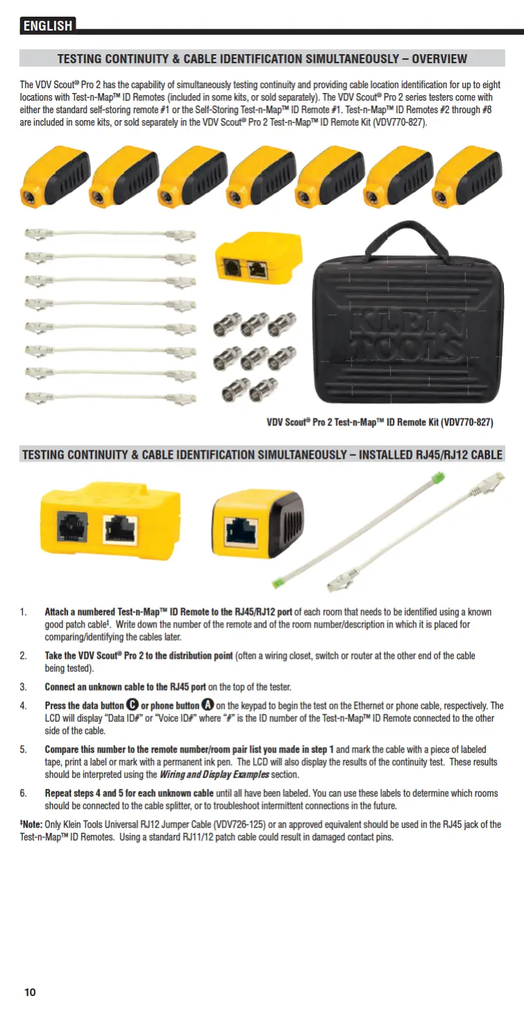 Klein Tools VDV Scout Pro 2 - SIMULTANEOUS TEST & IDENTIFICATION; RJ45;RJ12 SIMULTANEOUS TESTING