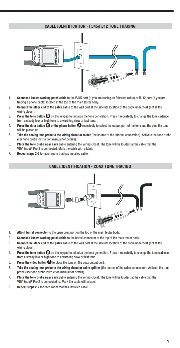 Klein Tools VDV Scout Pro 2 - CABLE IDENTIFICATION VIA TONE TRACING
