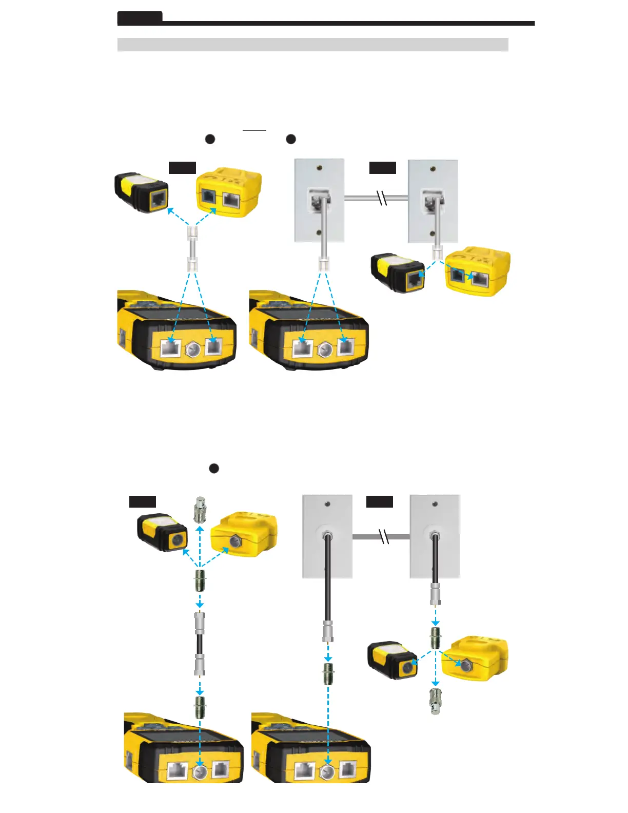 a voice cable) located at the top of the main tester body. If testing a wall port, connect a known good patch