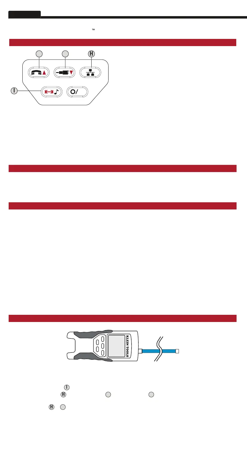 I. Tone/Length Measurement: While the tester is off, press and hold for three seconds to enter Tone mode (see general Keypad