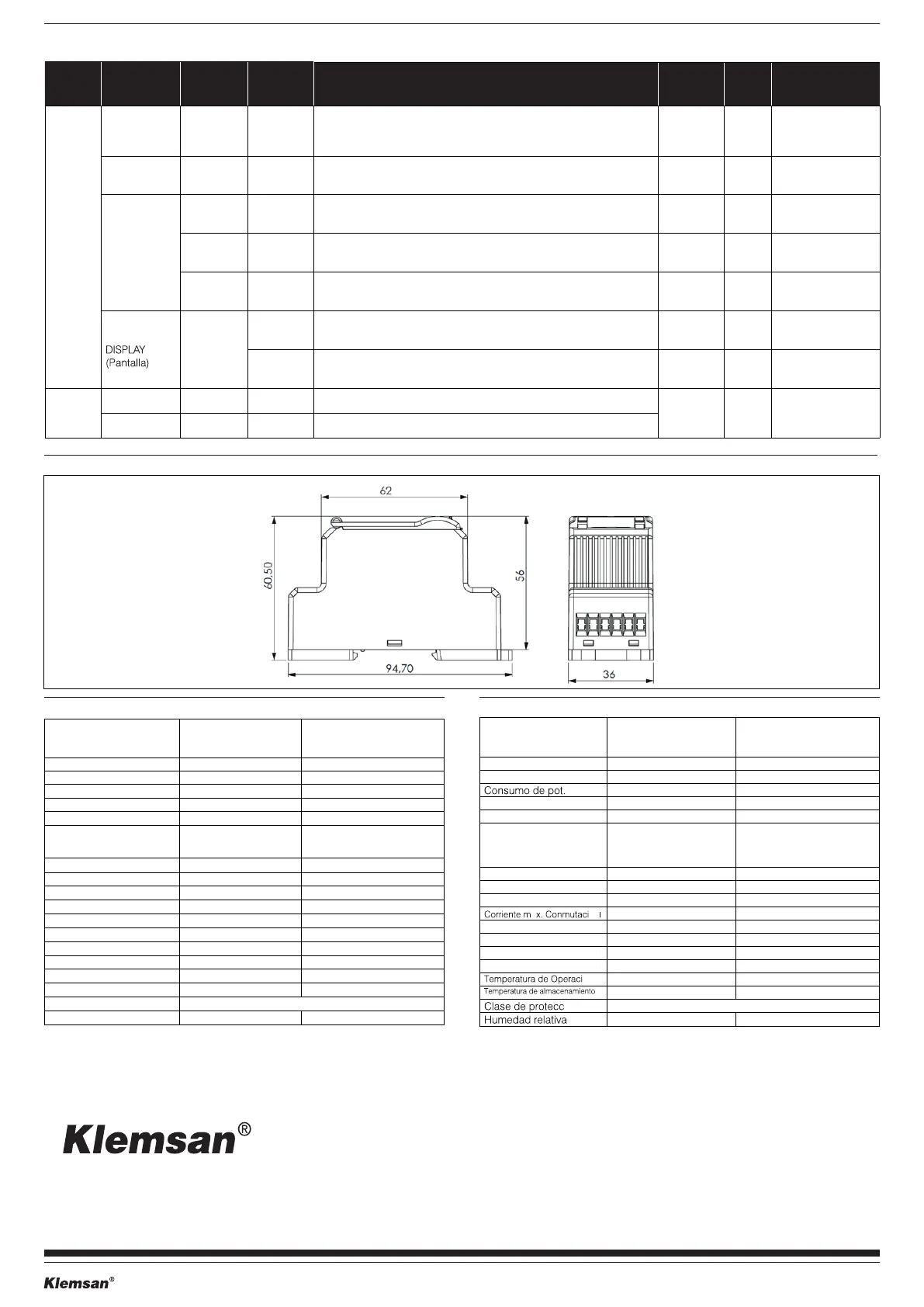 IP40 (Panel frontal), IP20 (Terminales)