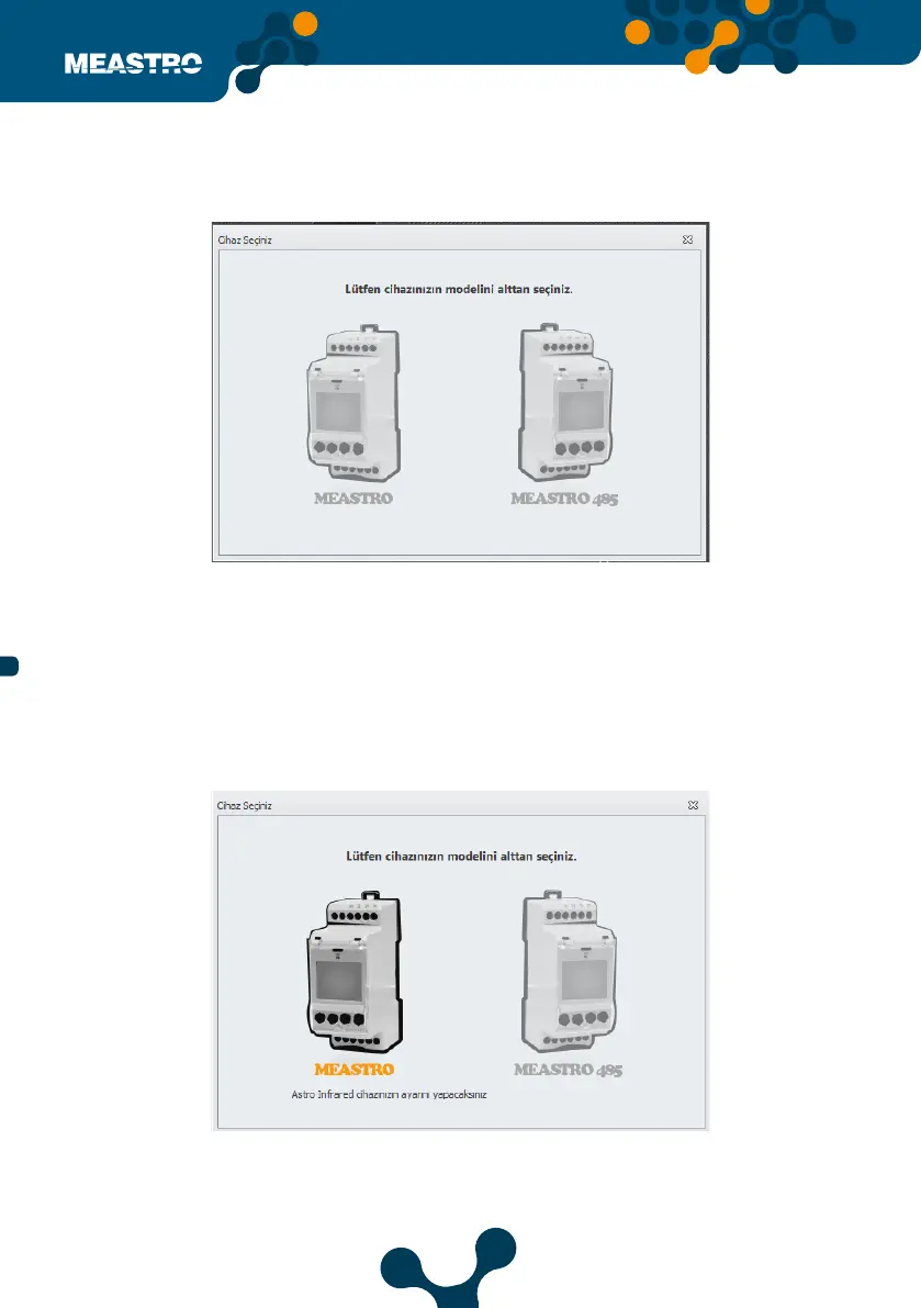 Kullanıcı arayüz programı açılı sayfasından Meastro (Infrared) chazını seçnz.