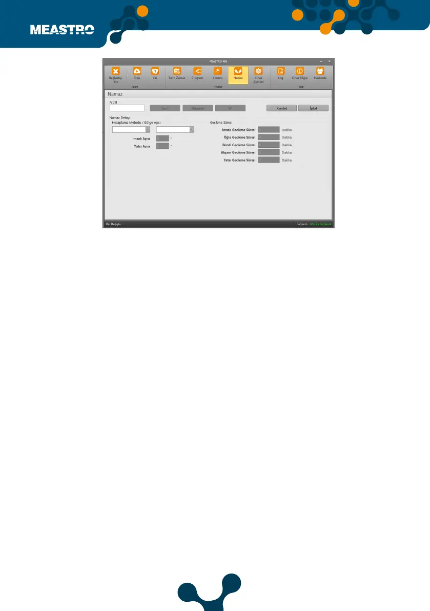 Bu sekmede Meastro’nun çalıacağı Namaz Ayarları yapılmaktadır.